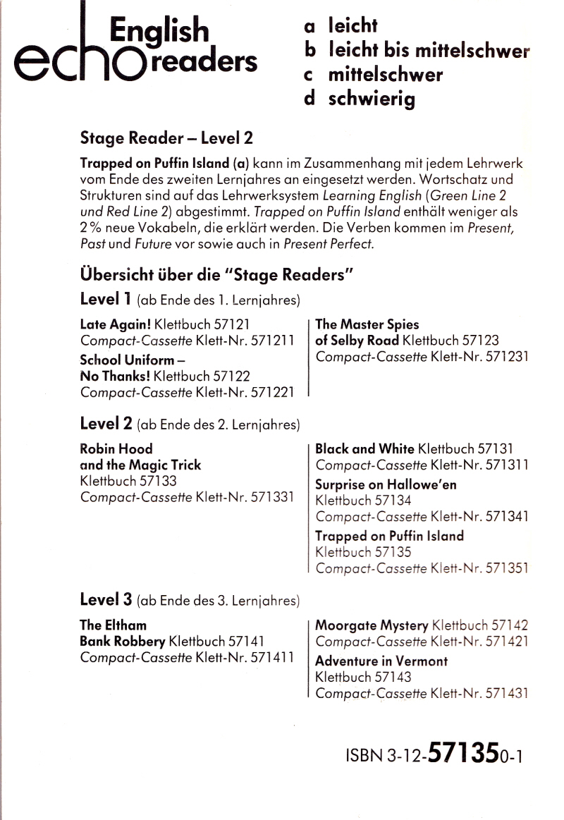 Trapped on Puffin Island Written by Alison Thirkell Assistant Principal Teacher of English at Madras 1974 - 1990 German version 1992 |